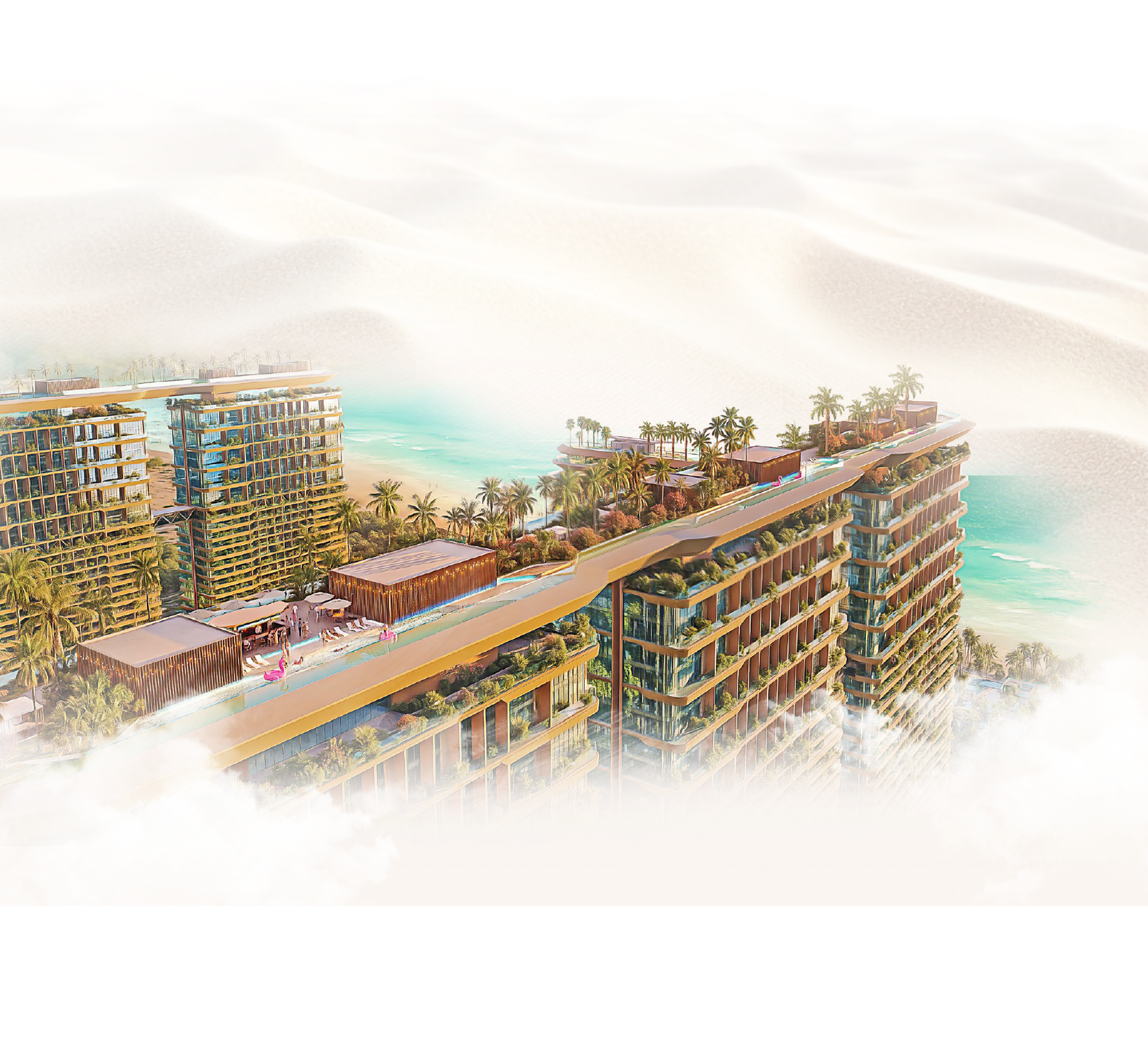 Trên nền tảng kiến trúc kiêu hãnh đó, một hệ sinh thái tiện ích đa tầng được phát triển theo mô hình Integrated Resort để nuôi dưỡng trọn vẹn mọi giác quan. Nhịp sống tại đây được phân tầng đầy tinh tế, từ những hoạt động thể thao biển giàu năng lượng như lướt ván buồm, Jet-ski, Kayak đến những khoảnh khắc tĩnh tại của Yoga và thiền định trên bãi cát. Hay tổ hợp giải trí thượng lưu trên tầng mái với Sky Bar & Lounge 5 sao và nhà hàng Rooftop ngắm toàn cảnh biển cùng chuỗi tiện ích chăm sóc sức khỏe và phong cách sống như gym, spa, yoga studio và không gian nghệ thuật …, góp phần định hình cộng đồng “Seatizen” theo đuổi chất sống tự do và tinh tế.