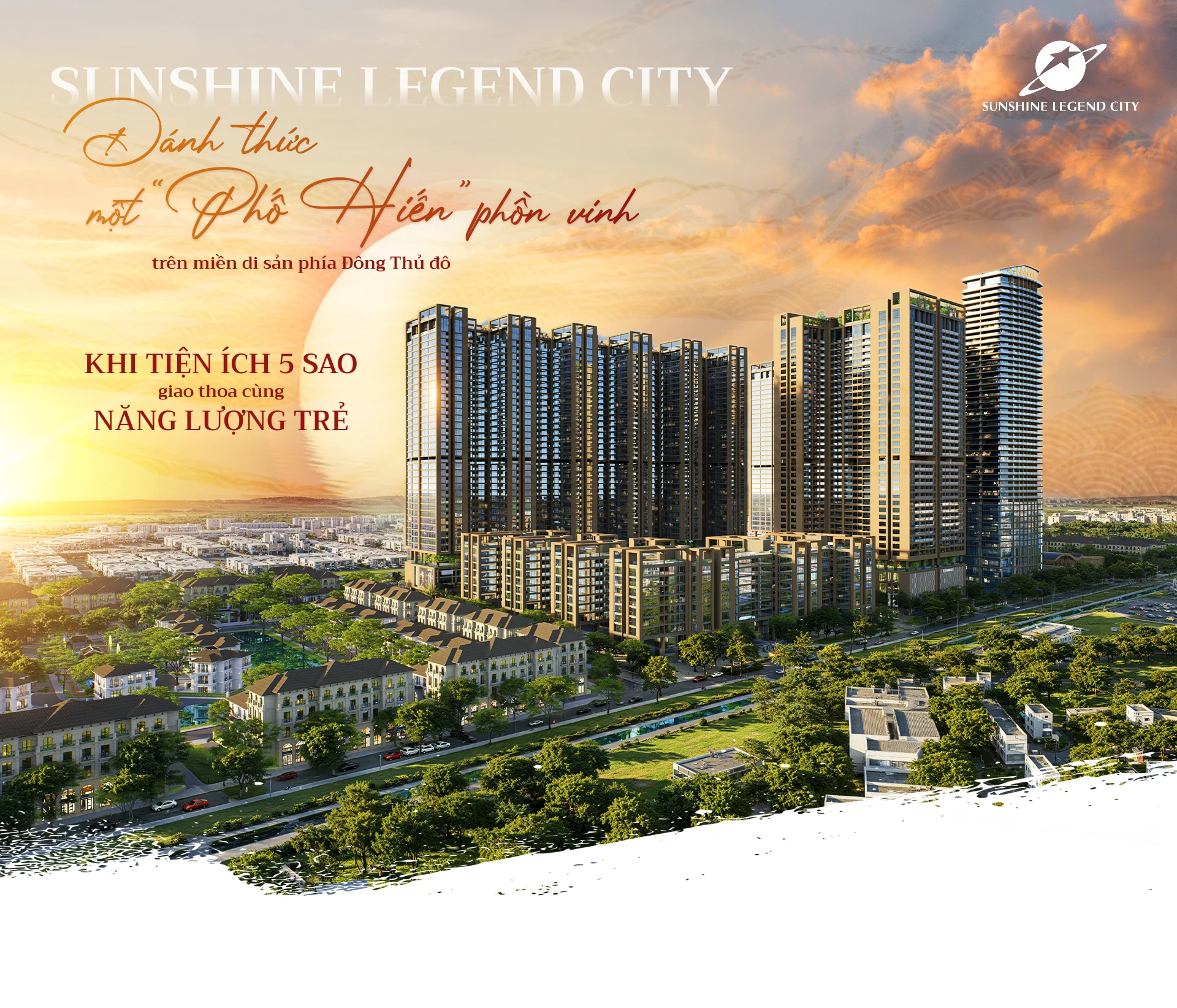 Hãy tưởng tượng về một dòng sông di sản trải dài 2km, nơi công nghệ 3D Mapping và Hologram đánh thức màn đêm bằng những đại tiệc ánh sáng và thực cảnh mãn nhãn. Tại đây, những tuyến phố đi bộ ven sông sôi động đan xen cùng "đại lộ mua sắm trên không" xa hoa và nhịp sống ZenZ Hub thời thượng. Tất cả cộng hưởng cùng tổ hợp nghỉ dưỡng mặt đất, hệ thống Clubhouse, Lounge Bar thượng lưu và hệ cảnh quan mặt nước rộng hơn 31.000 m²… Đó là những nét phác hoạ đầu tiên về Sunshine Legend City – Thành phố trẻ trên miền di sản phía Đông Hà Nội của Sunshine Group.