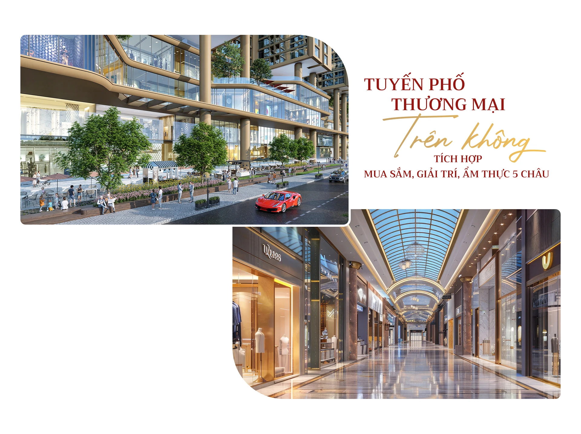 Chỉ vài bước lên tầng cao, tuyến phố thương mại liên hoàn trên không được quy hoạch tại khối đế các tòa tháp sẽ mở ra một thế giới mới, nơi các thương hiệu danh tiếng quốc tế hội tụ, mời gọi cư dân và du khách đắm mình trong không gian mua sắm và giải trí đẳng cấp. Giữa hai tầng không gian ấy, bạn sẽ cảm nhận rõ sự giao thoa kỳ diệu giữa quá khứ và hiện tại, giữa bản sắc địa phương và nhịp sống toàn cầu.