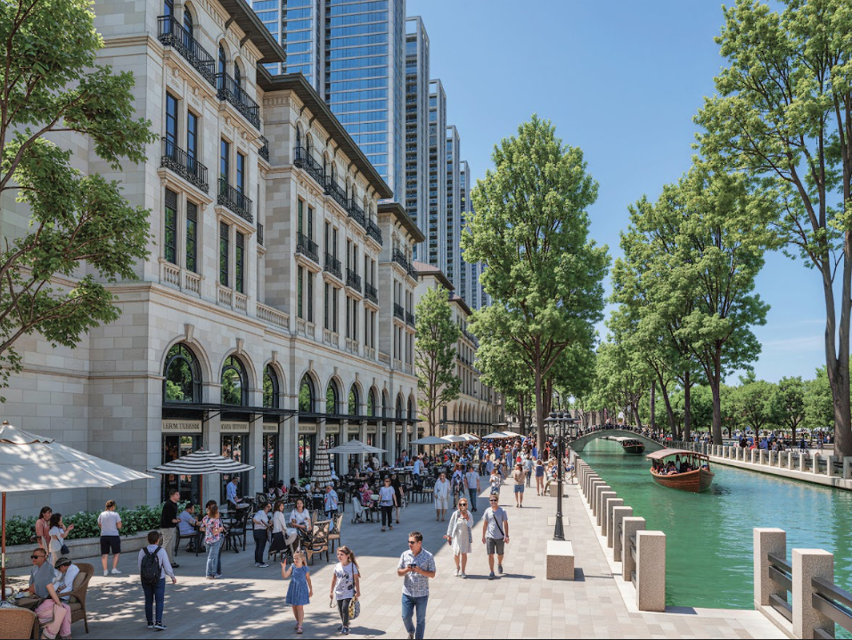 Nếu tuyến phố ven sông tại dự án gợi nhắc giá trị truyền thống, thì không gian thương mại trên cao lại phản chiếu một đô thị đang chuyển mình mạnh mẽ, năng động và toàn cầu hóa.