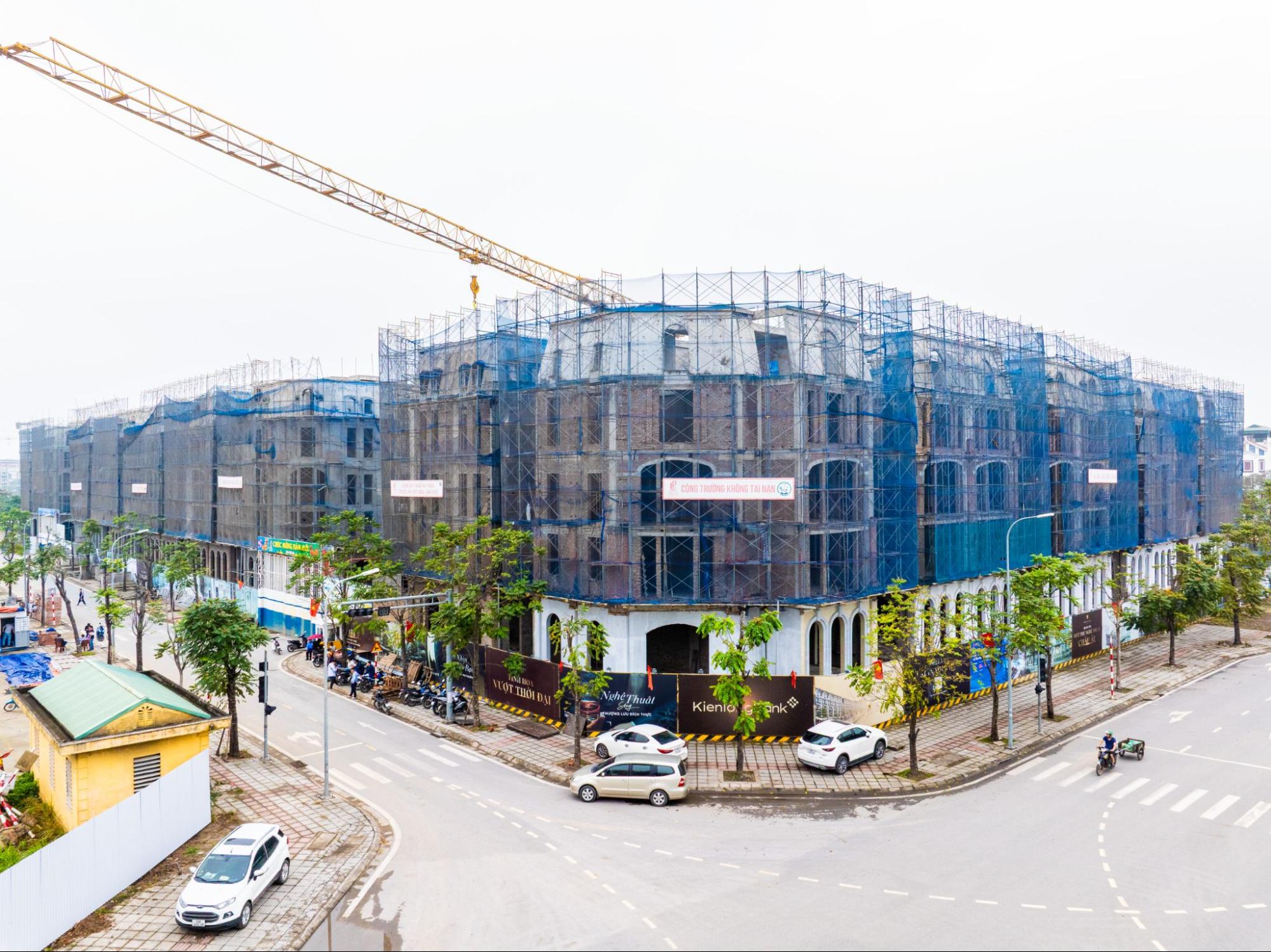 Ghi nhận tại công trường, 100% dinh thự tại đây đã cất nóc và đang đẩy nhanh tiến độ thi công mặt ngoài,