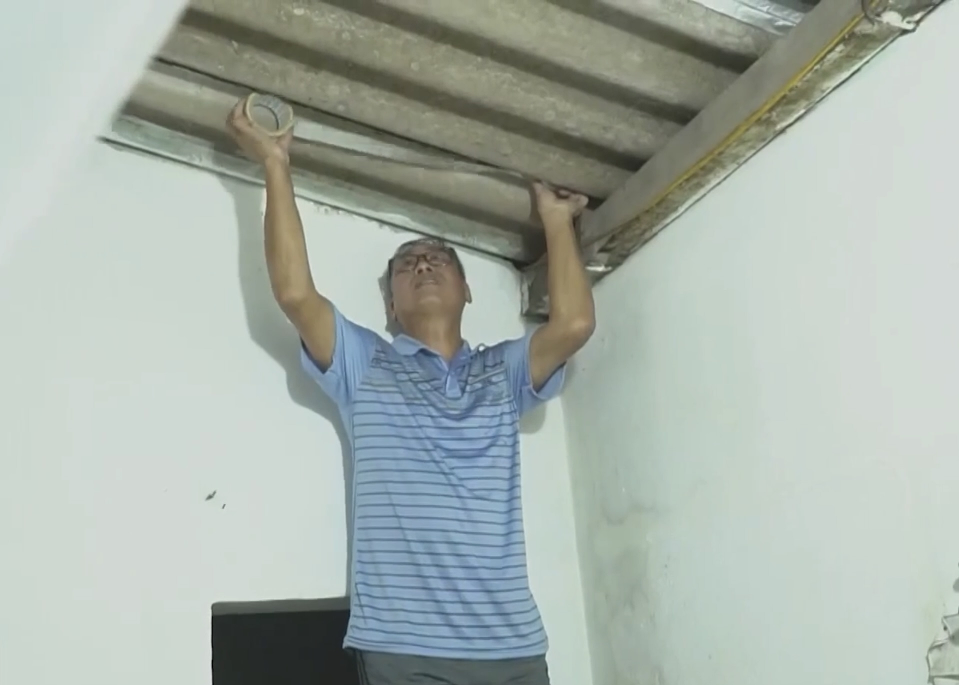 Hình ảnh ông ngoại dán lại mái nhà mỗi khi mưa lớn