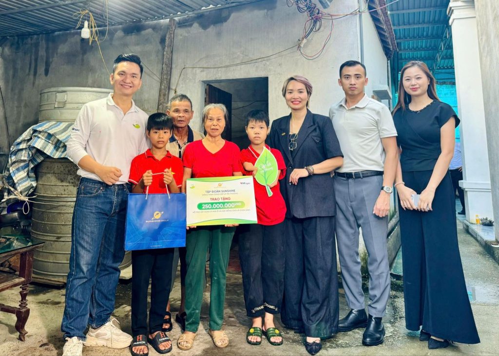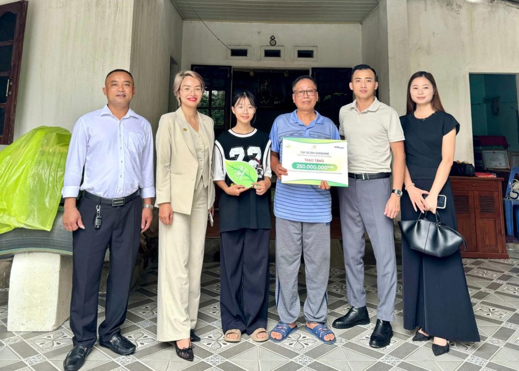 Đại diện Sunshine Group trao tặng món quà 250 triệu động cho gia đình em Yên.